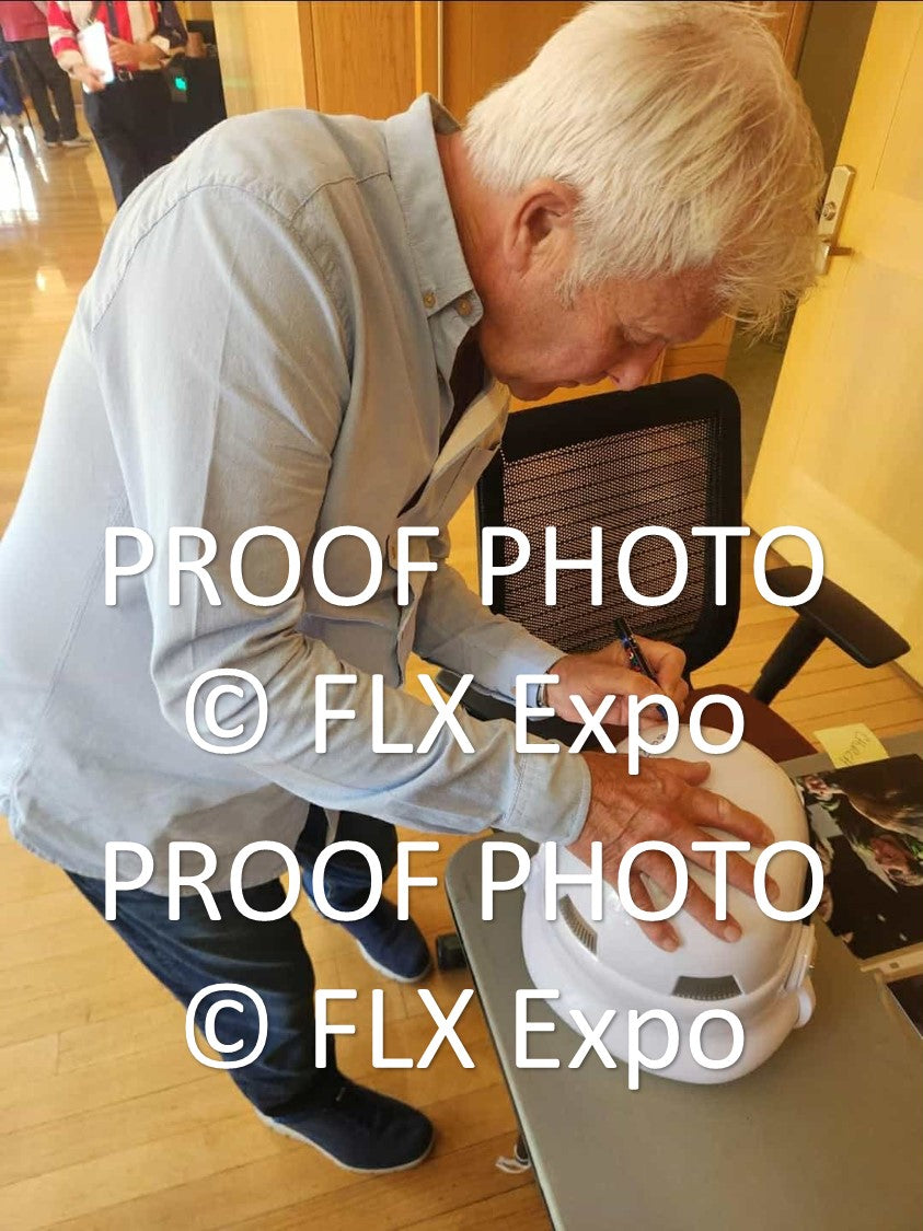 Here's your chance to grab an Authentic MULTI-SIGNED Spirit Halloween Stormtrooper Helmet! This item was HAND-SIGNED in both Black Sharpie marker and Blue Paint Pen by Three (3) of the Original Trilogy Actors on September 21st, 2025 during our IntergalactiCON event in Geneva, NY. Each Actor also added the film title they portrayed a Stormtrooper in! This item comes Mint-in-Box (only opened when signed and for photos), the box contains the original stand/base (still unopened) and padding (unused and unopened). This IntergalactiCON Signature Series piece includes EXACT PROOF PHOTOS and a Certificate of Authenticity (C.O.A.) signed by the signature witness.