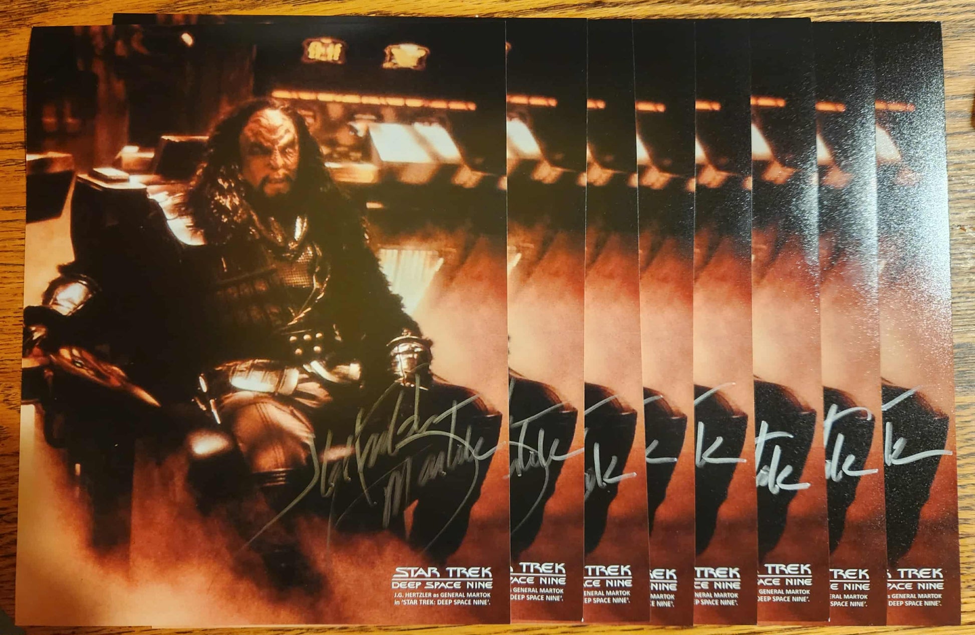 Here's your chance to grab an Authentic SIGNED Star Trek Martok 8x10! This item was HAND-SIGNED in silver Sharpie marker by Actor J.G. HERTZLER (Martok in Star Trek: Deep Space Nine)! This Martok 8x10 was signed during a Private Signing event at Batavia Downs and Casino on October 13, 2025 in Batavia, NY and will come in a top loader and soft protective sleeve. *NOTE: J.G. Hertzler added Character Name to EACH photo.